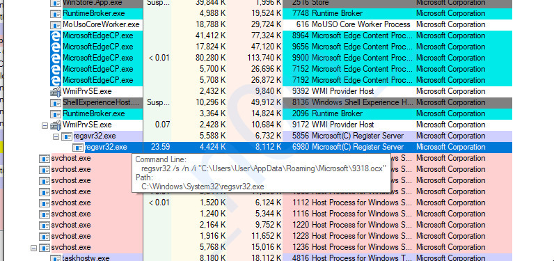 CAR-2019-04-003: Squiblydoo talks about the usage of regsvr32, this malware also uses regsvr32 /s /n /i "C:\Users\User\AppData\Roaming\Microsoft\4242.ocx to avoid defense inside the machine (MITRE ATT&CK T1218.010).