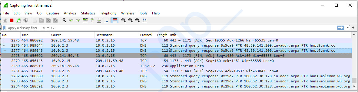 The first packet that we see after msxls runs is a PTR query to (IOC) 209.141.59.48