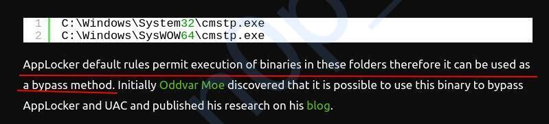 Sidenote: cmstp is often used to bypass Applocker, Reference. MITRE ATT&CK (#T1218.003) links this technique to Cobalt Group and MuddyWater.